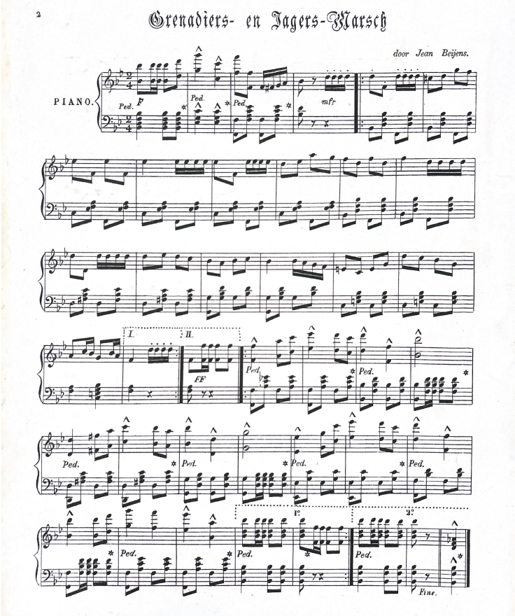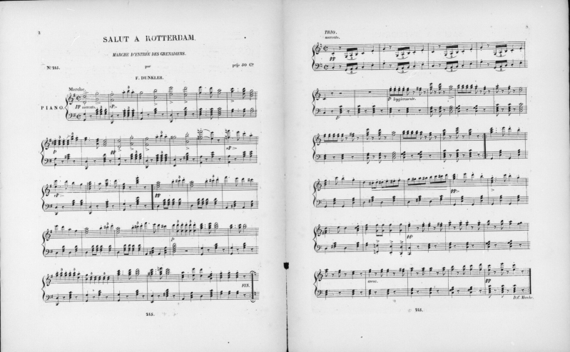 Componist: F. Dunkler Sr. of Jr. (kapelmeester stafmuziek van het regiment Grenadiers en Jagers, latere Koninklijke Militaire Kapel)