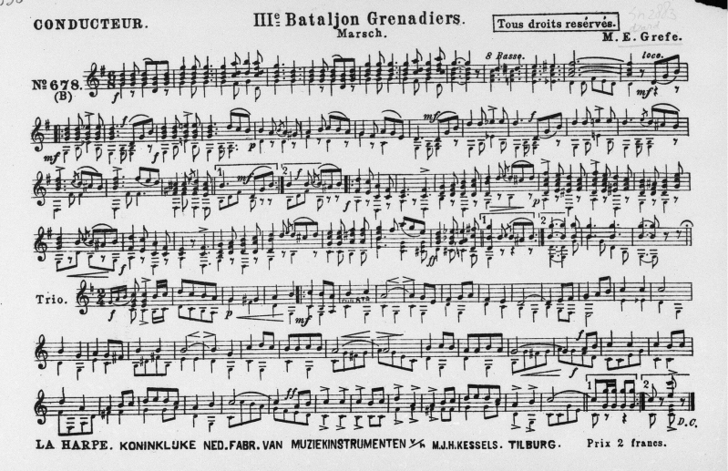 Componist: F. Dunkler Jr. (kapelmeester stafmuziek van het regiment Grenadiers en Jagers, latere Koninklijke Militaire Kapel)