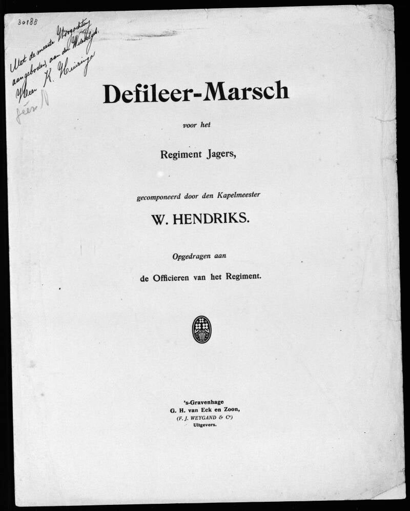 Componist: W. Hendriks (kapelmeester Regiment Jagers)