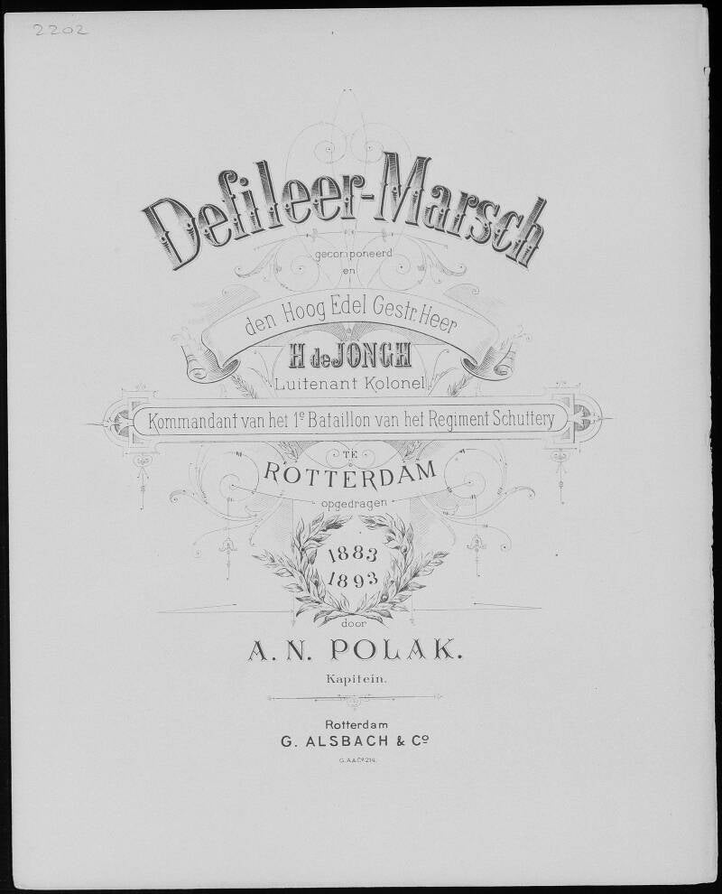 Aan den Hoog Edel Gestr. Heer H. de Jongh, Kommandant van het 1e Bataljon van het Regiment Schutterij te Rotterdam