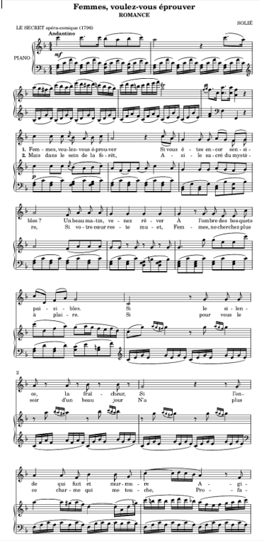Op de wijze van "Femmes voulez vouz eprouver" uit de opera 'Le Secret' uit 1796 van J.P. Solié